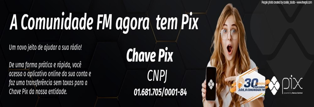 Faça uma doação e ajude a Comunidade FM! Seu apoio é essencial para manter nossa programação no ar!